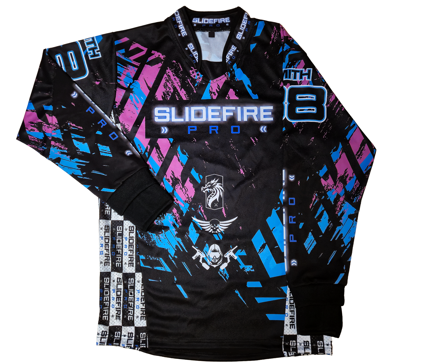 “Slidefire was amazing from start to finish!! Clear communication, friendly support, awesome designs. When you’re looking for purpose built speedsoft jerseys there’s nothing better I know.” – Blake 308